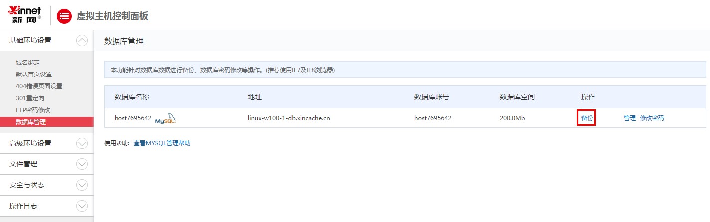 當您購買(mǎi)了包括MySQL5.1的虛擬主機,系統會(huì )默認為您提供MySQL數據庫,數據庫的基本信息數據庫服務(wù)器地址、數據庫用戶(hù)名及密碼。您可以直接進(jìn)入虛擬主機控制面板管理您的MySQL數據庫。